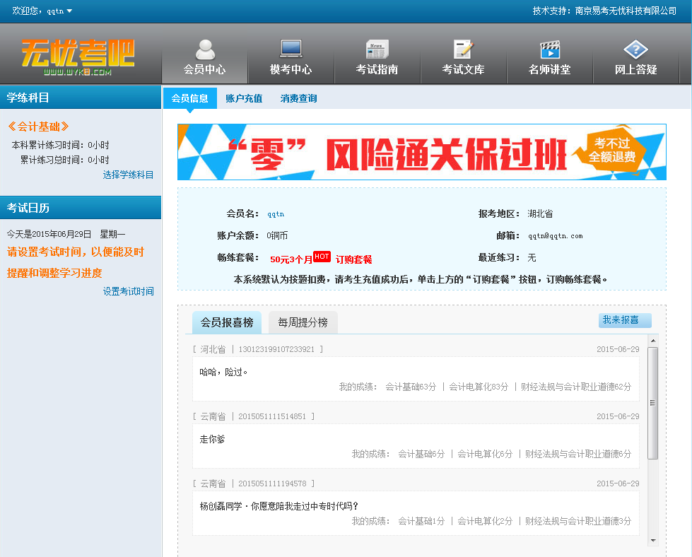 2、还没有无忧考吧帐号?赶快注册您专属的会员号吧!